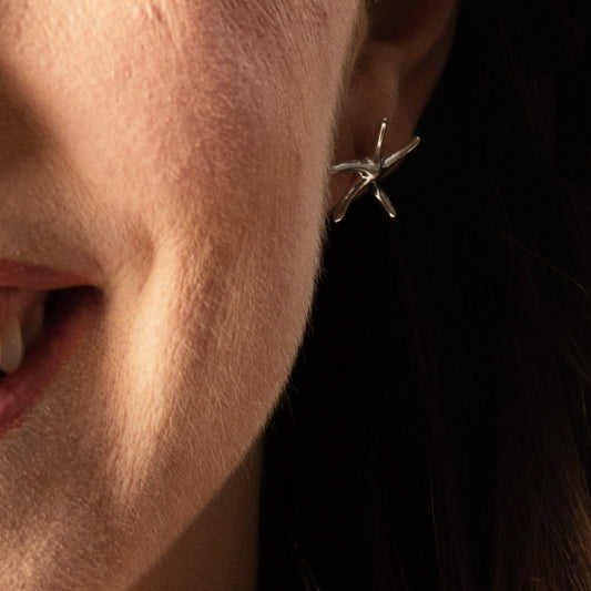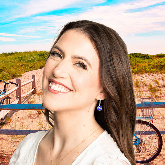 Small Octagon Compass Rose Leverback Earrings with Stone in Center