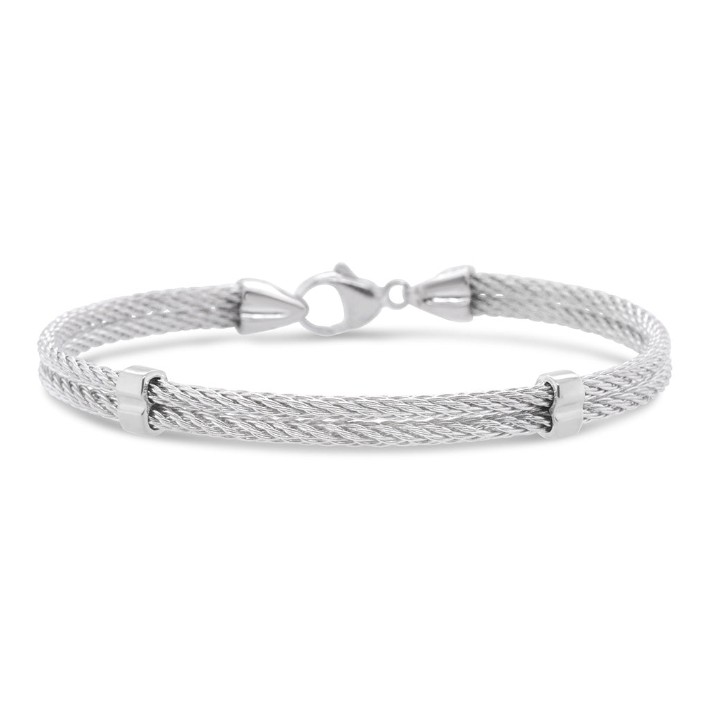- Double cable sterling silver bracelet with joiners in sterling silver or 14k gold for a touch of flare (2mm cable)